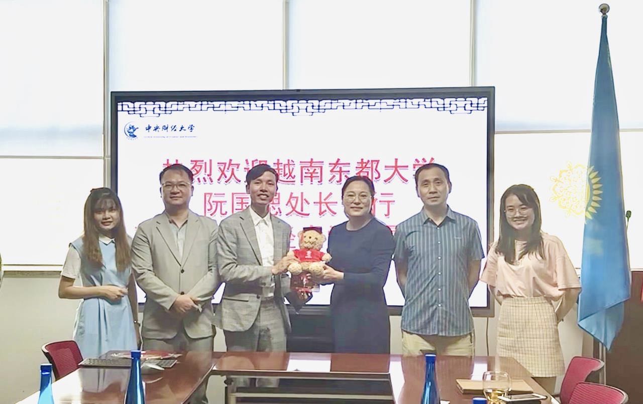 陈香代表学院对阮国偲一行表示热烈欢迎,并详细介绍了学校来华留学教育发展历程、自费预科项目、自费本科项目和国际中文教师奖学金“中文+财经”硕士项目等。她表示,学校招收来华留学生的历史可以追溯至上世纪50年代,其中首批招收的就是来自越南的学生。中越两国人民友谊源远流长,希望更多越南优秀学生来学校深造,并期待和东都大学在校际交流方面加强合作。