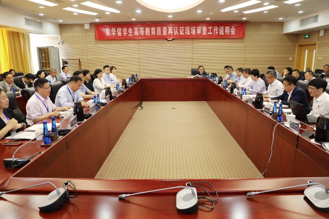 6月6日至7日,中国教育国际交流协会(以下简称“交流协会”)对学校开展来华留学生高等教育质量再认证现场审查。交流协会秘书长杨军,认证专家组组长秦尚海,组员李梅花、郭伏良、王琦,交流协会审查员别晓竹、卢春玲、刘禹廷来校进行现场审查。学校党委书记吴国生,校长马海涛,校党委常委、宣传部部长雷洪峰,校长助理陈斌开,相关职能部门和留学生培养单位主要负责人等参加了相关活动。